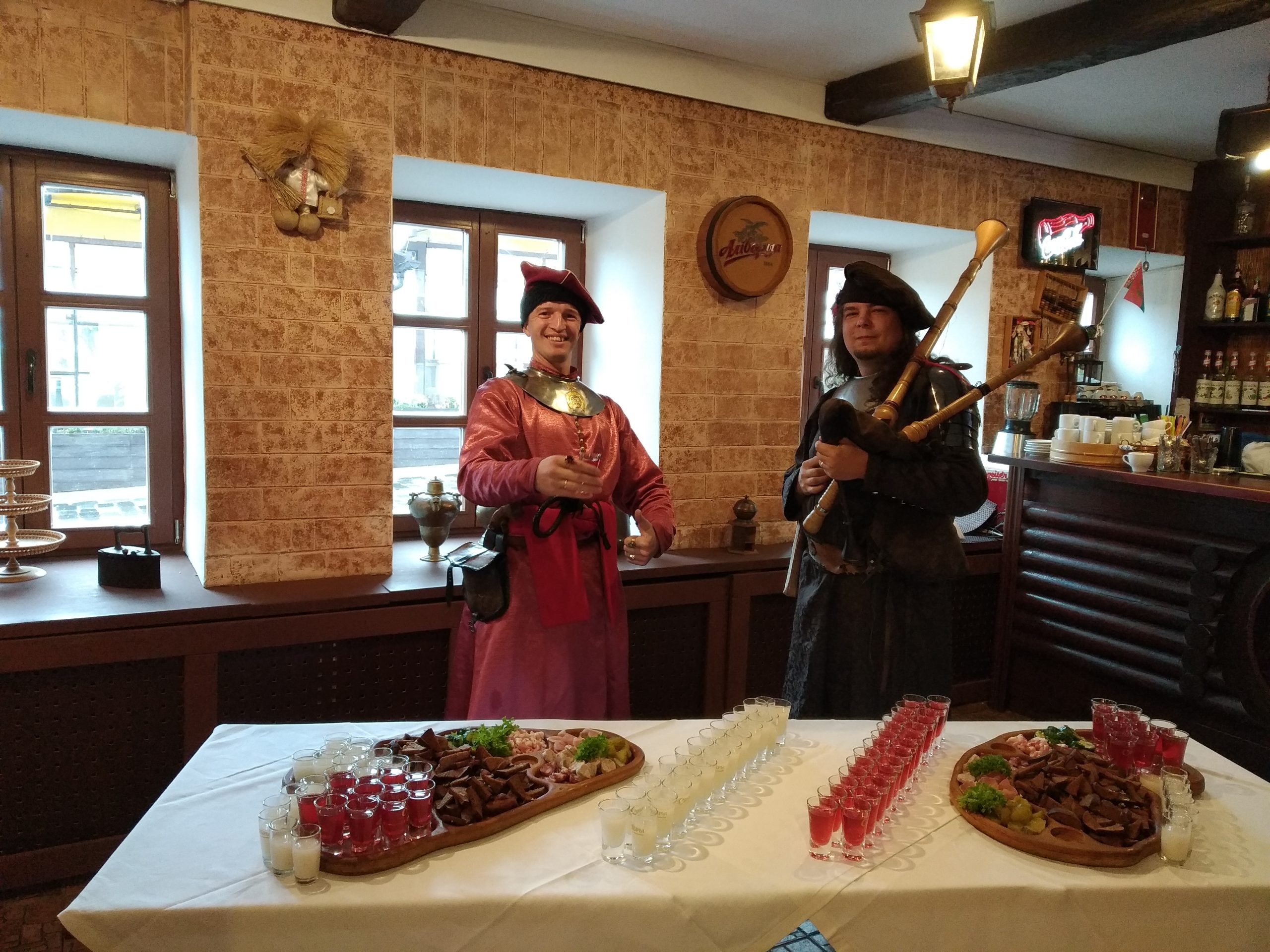 Захапляльная сустрэча вашых гасцей па-беларуску! Беларускі шляхціч-рыцар асобна ці з лепшымі беларускімі музыкамі сустрэне і забіваць вашу гасціну падчас фуршэту ці на пачатку мерапрыемства. Гэтаксама магчыма правядзення сустрэчы турыстаў-авантурыстаў, дэлегатаў – гасцей, сваякоў – сяброў па прыездзе ці на запрашальным абедзе, гала-вячэры і пад.